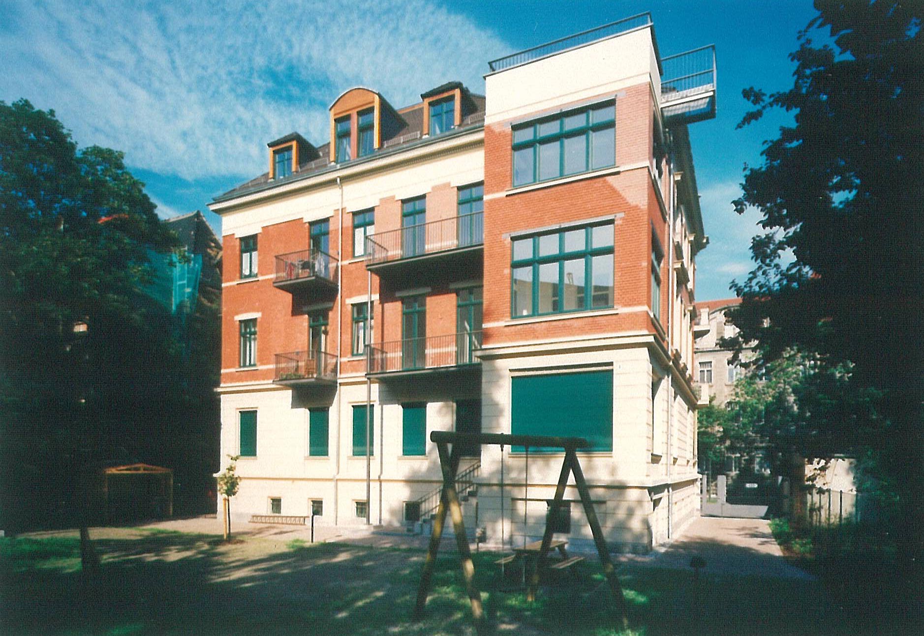 Eine um 1900 erbaute Villa in Leipzig-Gohlis Süd mit 2 Gewerbeeinheiten und 10 Wohnungen.